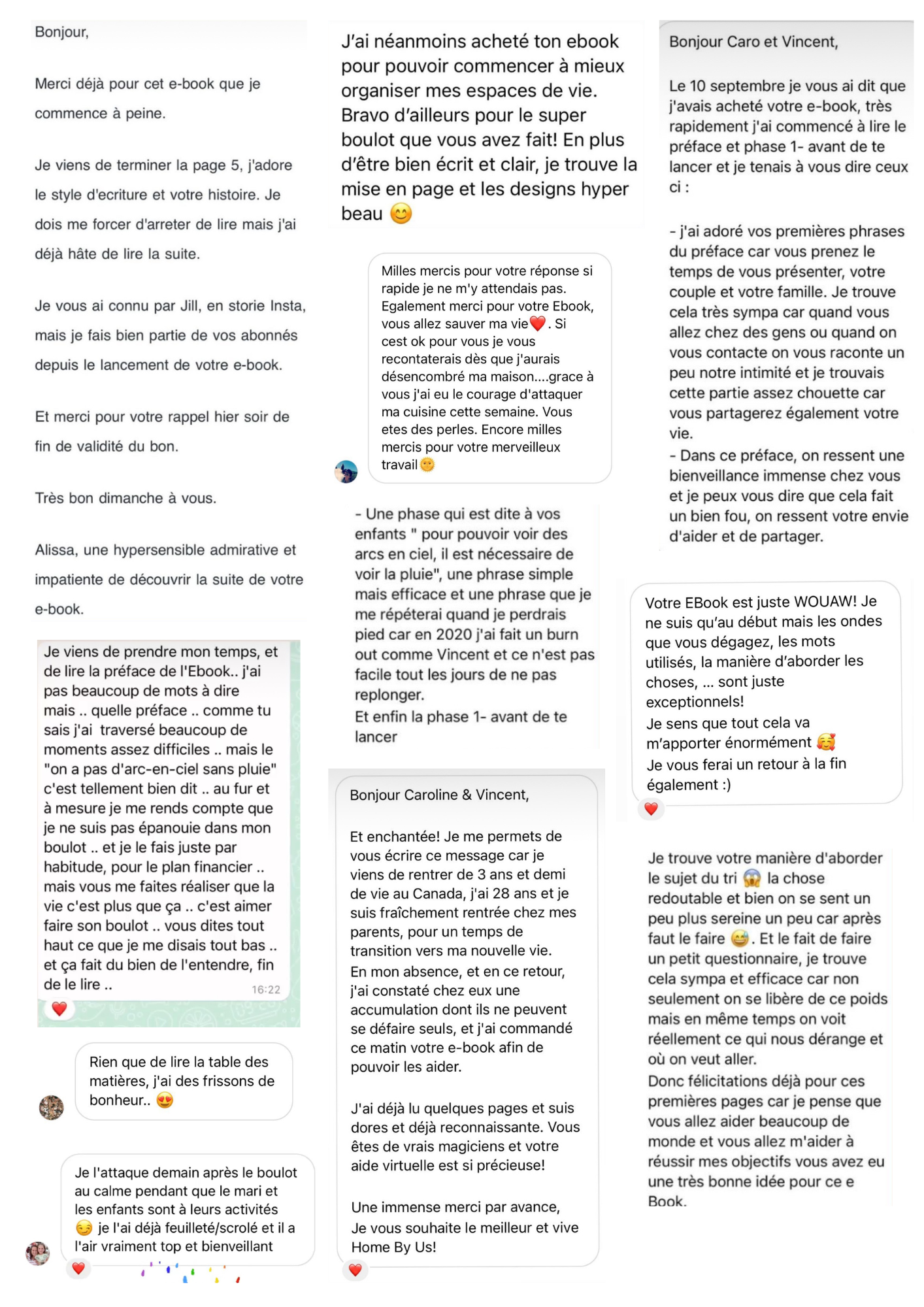 À travers cet E-Book ultra-complet de plus de 100 pages, tu apprendras, grâce à notre méthode, à trier, désencombrer et organiser chacune des pièces de ton intérieur.